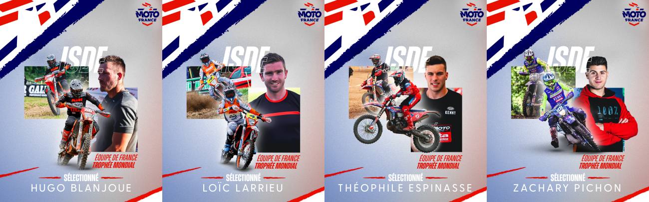 La délégation française sera composée de 10 pilotes répartis en 3 catégories (Trophée Mondial, Trophée Junior et Trophée Féminin). Chaque équipe tricolore engagée dans cette compétition aura à coeur de défendre les couleurs de la nation pour cette 97ème édition des ISDE.