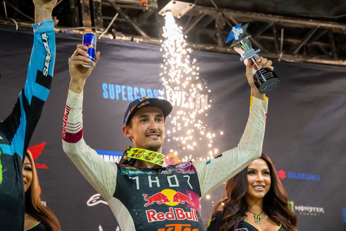 8ème chrono à l’issue des qualifications, puis 4ème de sa ‘Heat’, Marvin Musquin s’est rapidement installé dans le Top5 au départ de la finale pour prendre la 3e place peu après la mi-course derrière Barcia et Tomac, avant la victoire du pilote de la Yamaha #3 !