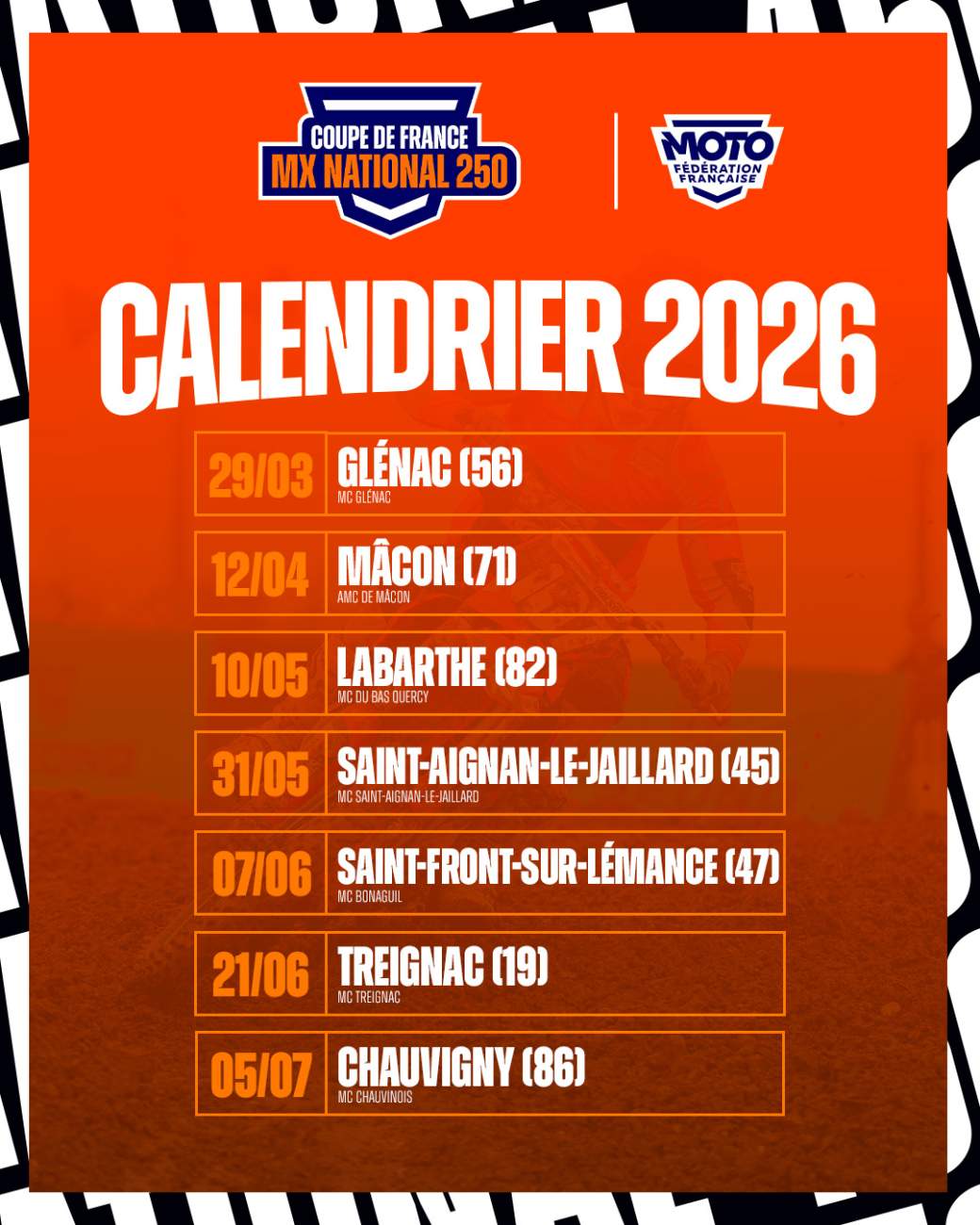Calendrier 2026 - Coupe de France MX National 250cc