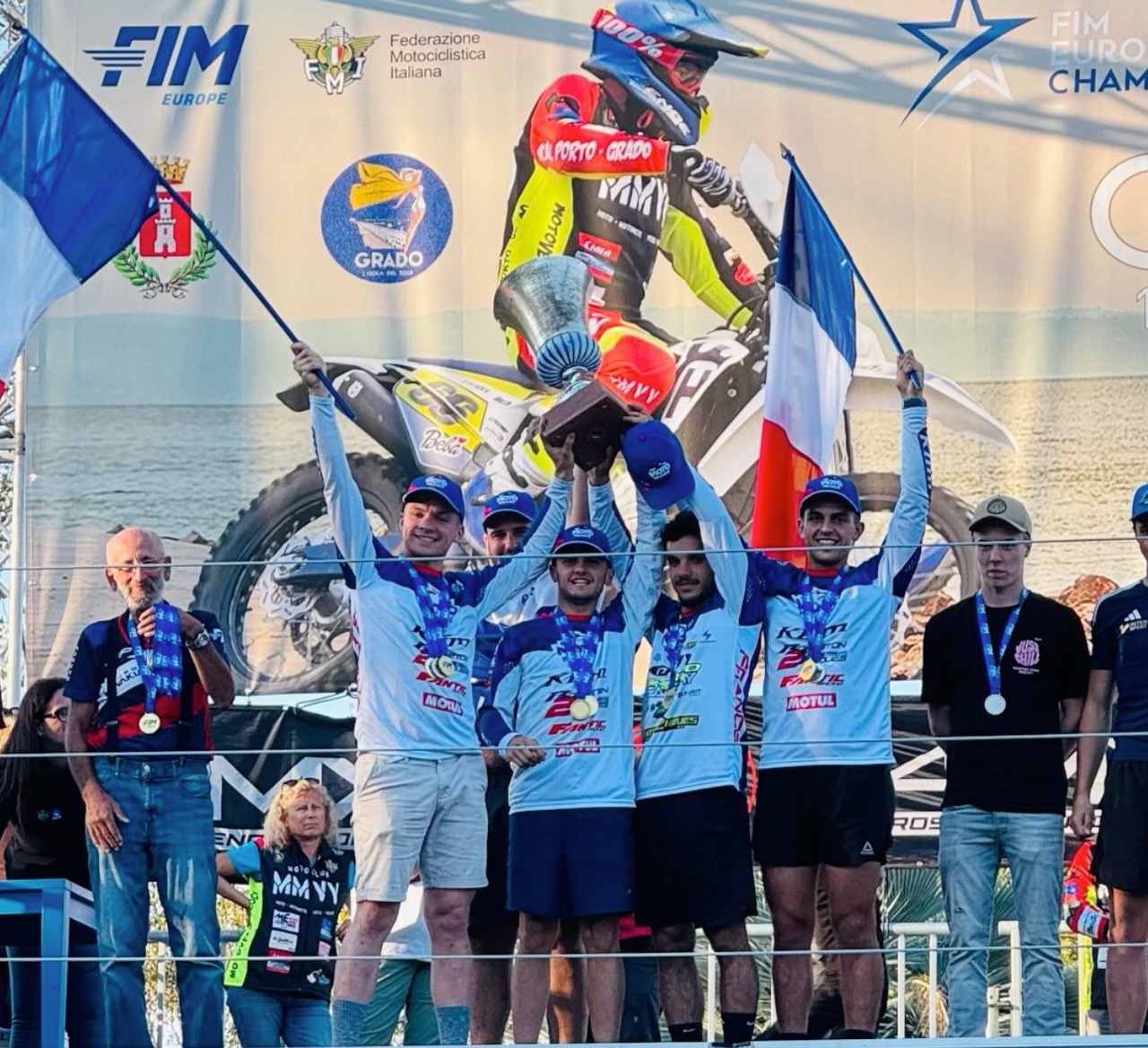 L’équipe de France sacrée championne d’Europe Junior 2025 pour la deuxième fois ! C’est une véritable pluie de médailles pour la jeunesse tricolore de l’enduro ! Sur les spéciales italiennes, le quatuor composé de Valentin Mersin, Armand Rouquette, Mattéo Arrieta et Dorian Simon (tous membres de l’Équipe de France Espoir Europe) a livré deux journées exemplaires, mêlant vitesse, régularité et esprit d’équipe.