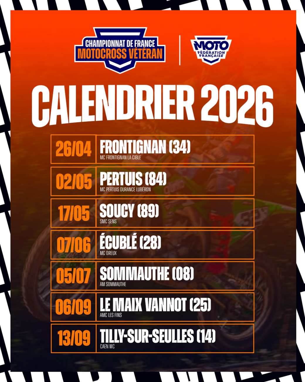Philippe Martin et Marc Vis, accompagnés de toute leur équipe, vous donnent rendez-vous le 26 avril sur le circuit de Frontignan. Un événement à ne pas manquer, qui accueillera en parallèle du Championnat de France MX Vétérans les épreuves du Championnat de Ligue Méditerranée en 85cc, 125cc et 250cc/450cc.