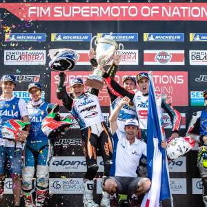 L’Équipe de France Supermoto avec Thomas Chareyre, Sylvain Bidart et Laurent Fath, Jules Cluzel, Lucas Mahias, Stéphane Paulus, Dimitri Bergé et Mathieu Trésarrieu.