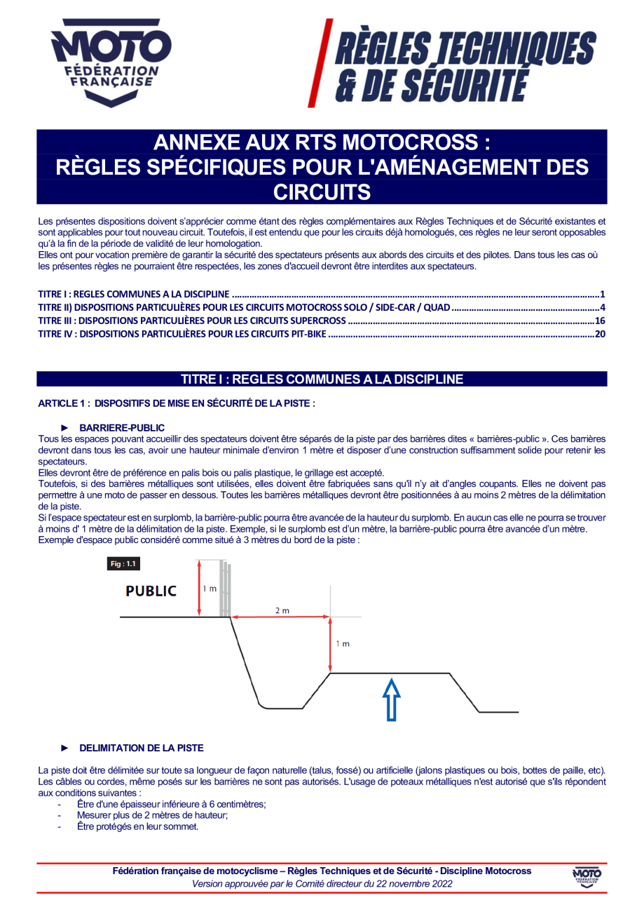 Annexe RTS Motocross - Règles spécifiques pour l'aménagement des circuits - CD 26 novembre 2022