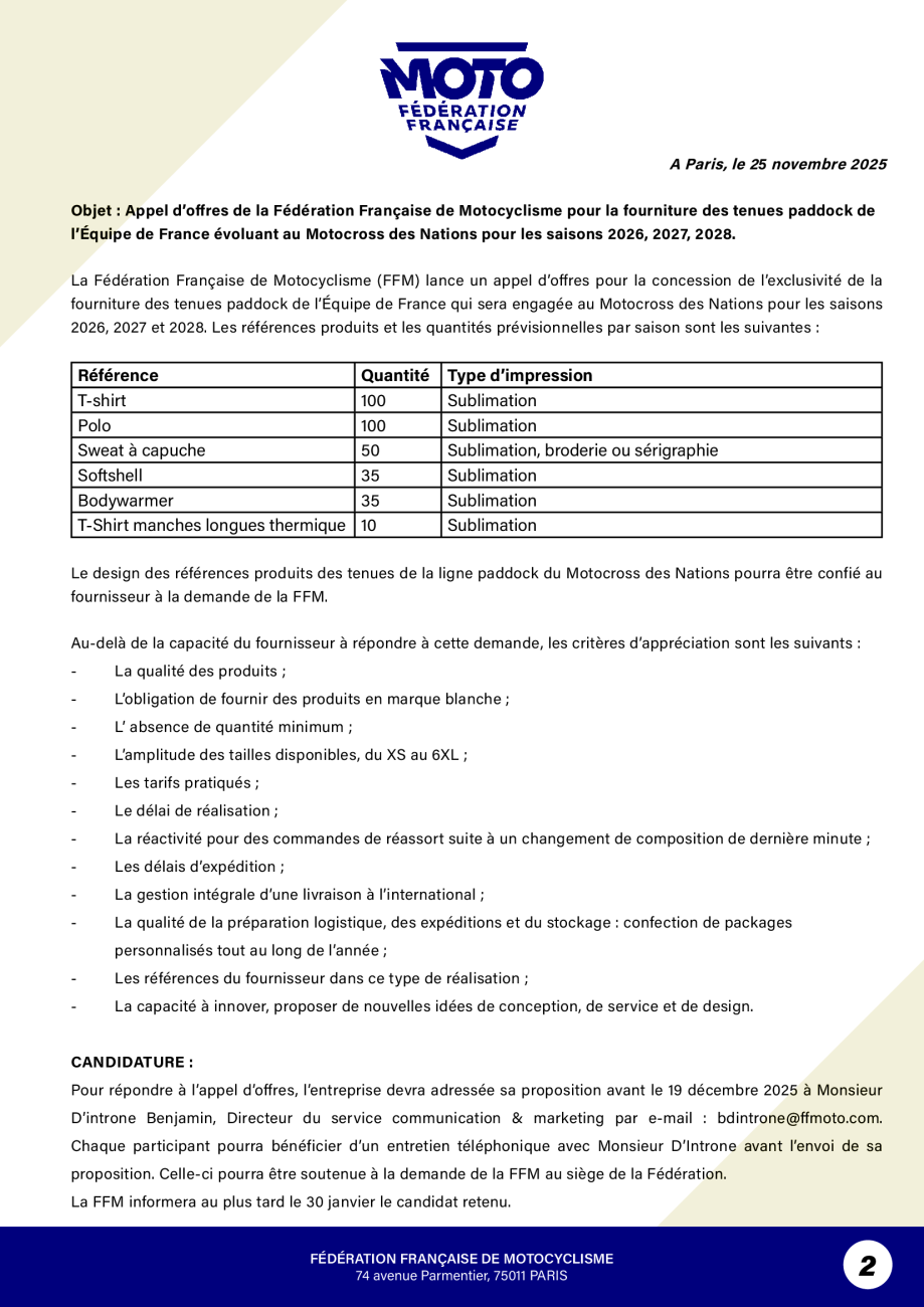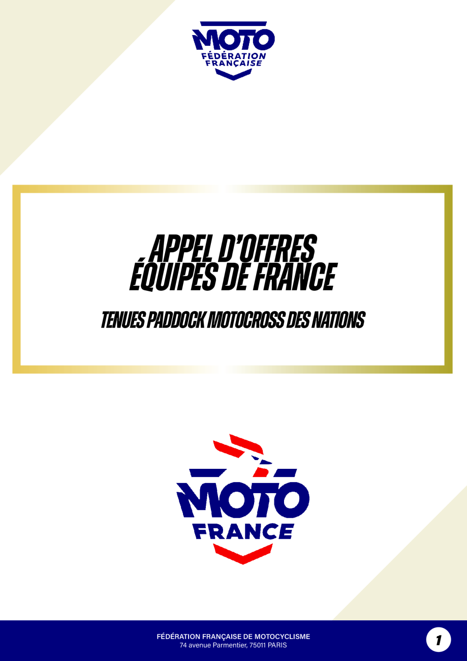 Appel d’offres : Tenues paddock de l’Équipe de France de Motocross