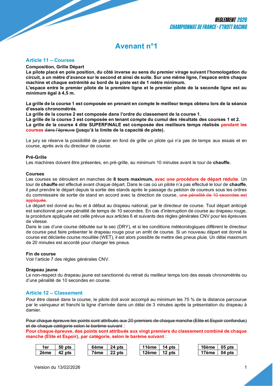 Avenant 1 - Championnat de France E'Trott Racing 2026
