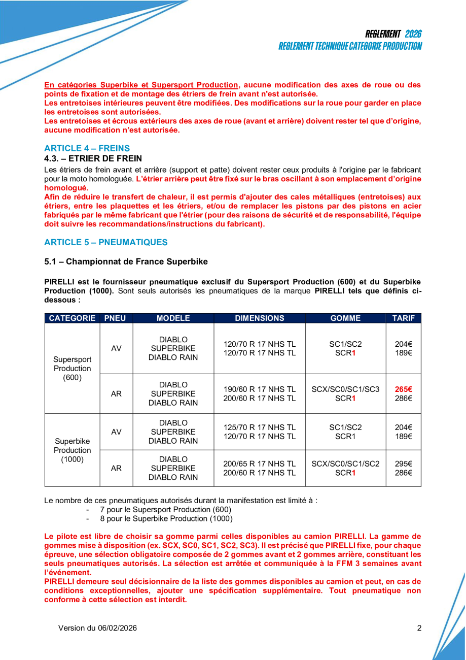 Avenant n°2 Règlement Catégorie Production 2026