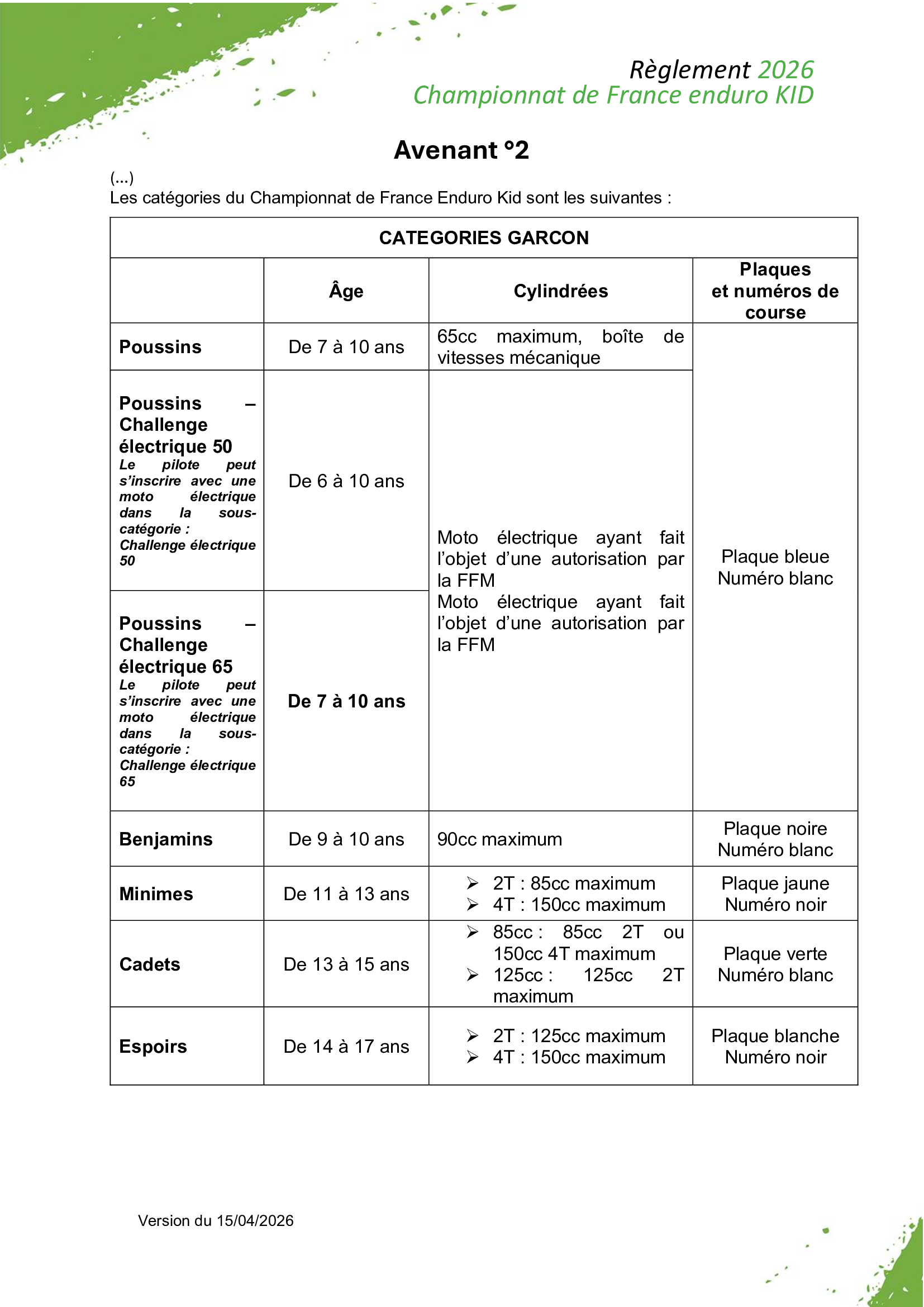 Avenant n°2 - Règlement CF Enduro Kid 2026