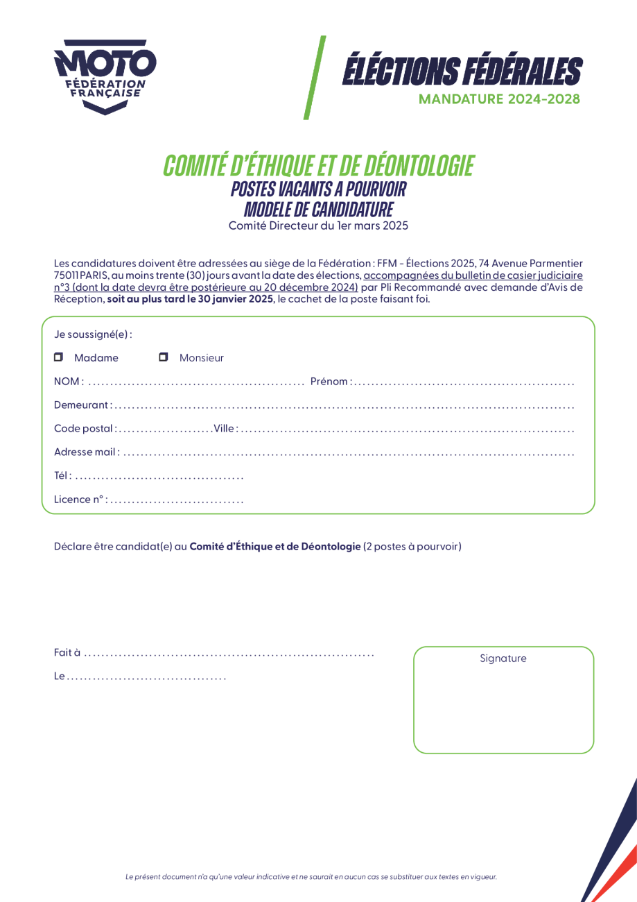COMITE DÉTHIQUE ET DE DÉONTOLOGIE - Modèle de candidature - CD du 1er mars 2025