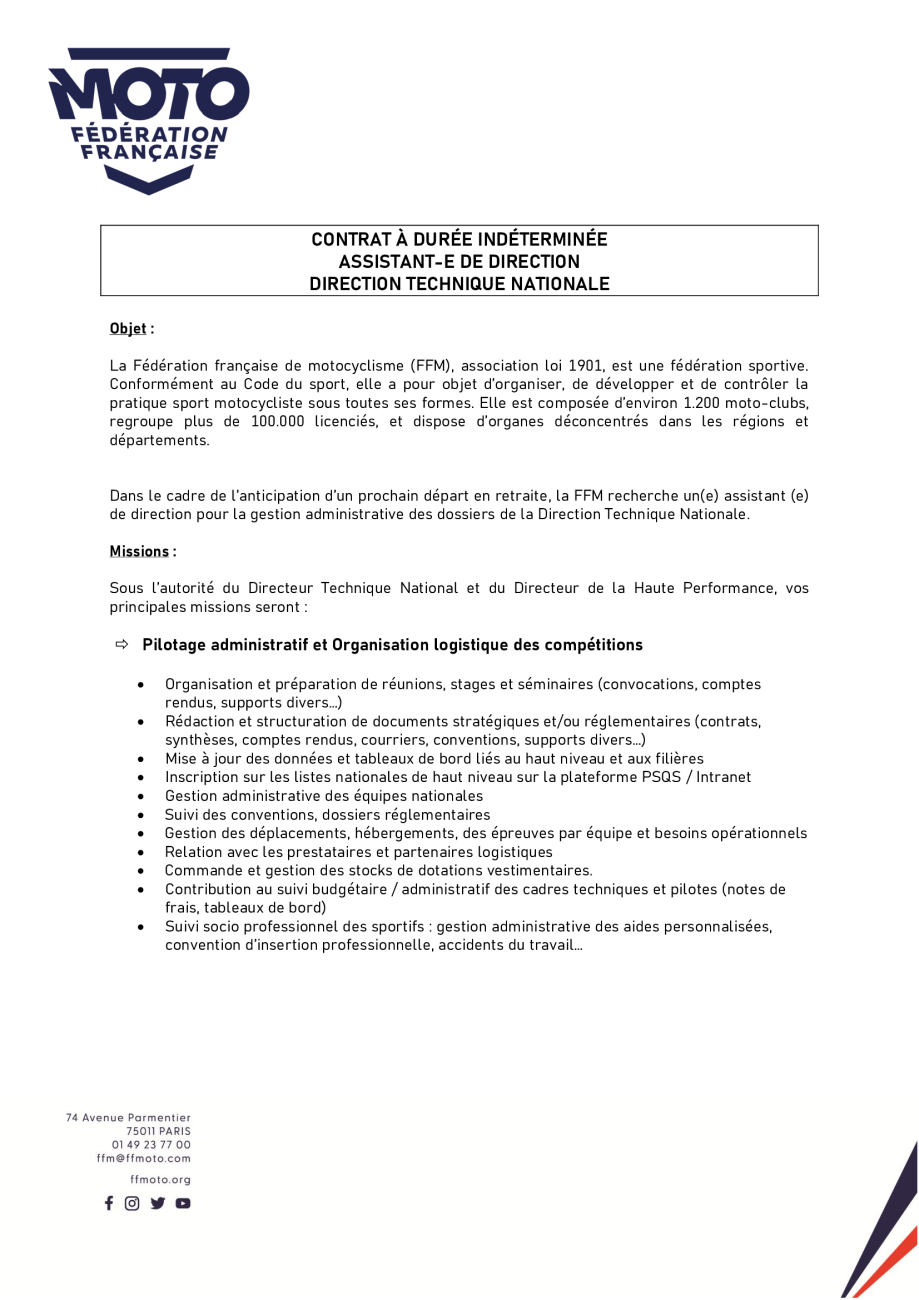Fiche de poste - Assistant de Direction - DTN