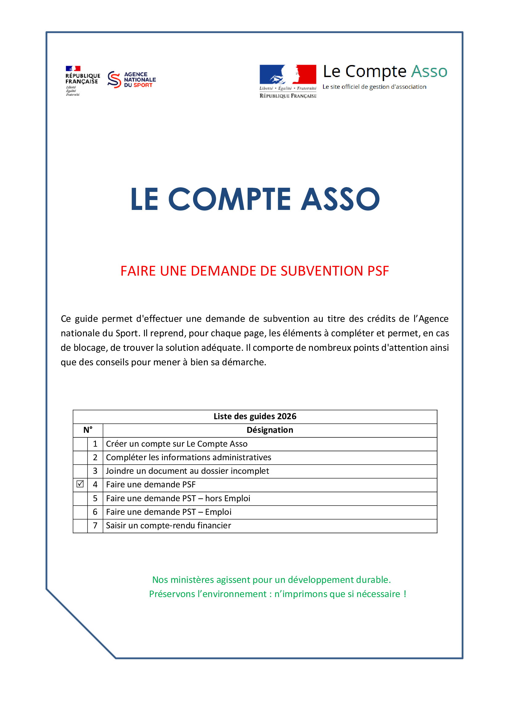 GUIDE DE DEMANDE DE SUBVENTION