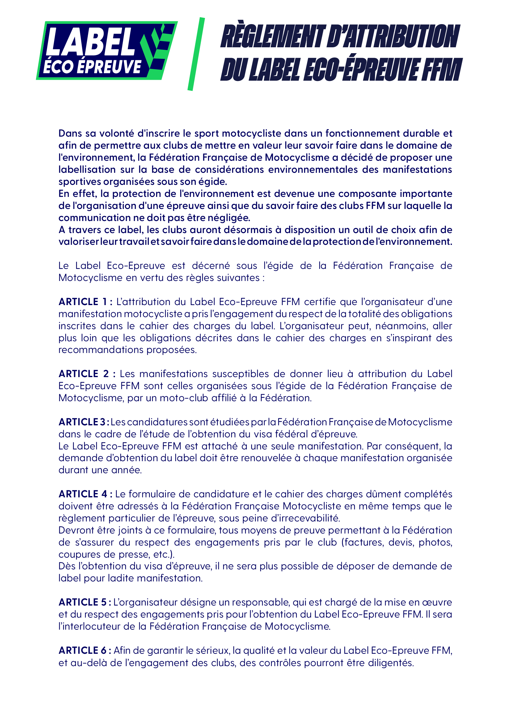 Label Eco Epreuve FFM