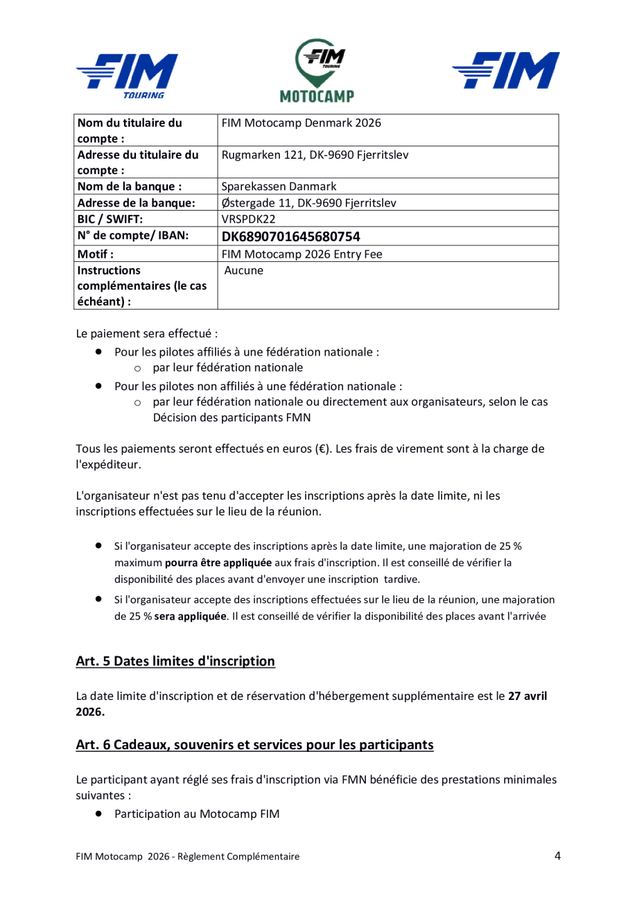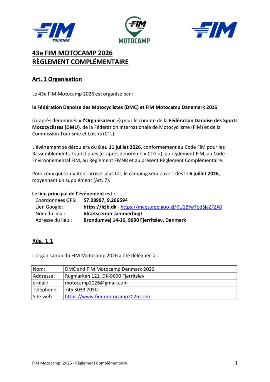 Motocamp 2026 - Règlement Particulier
