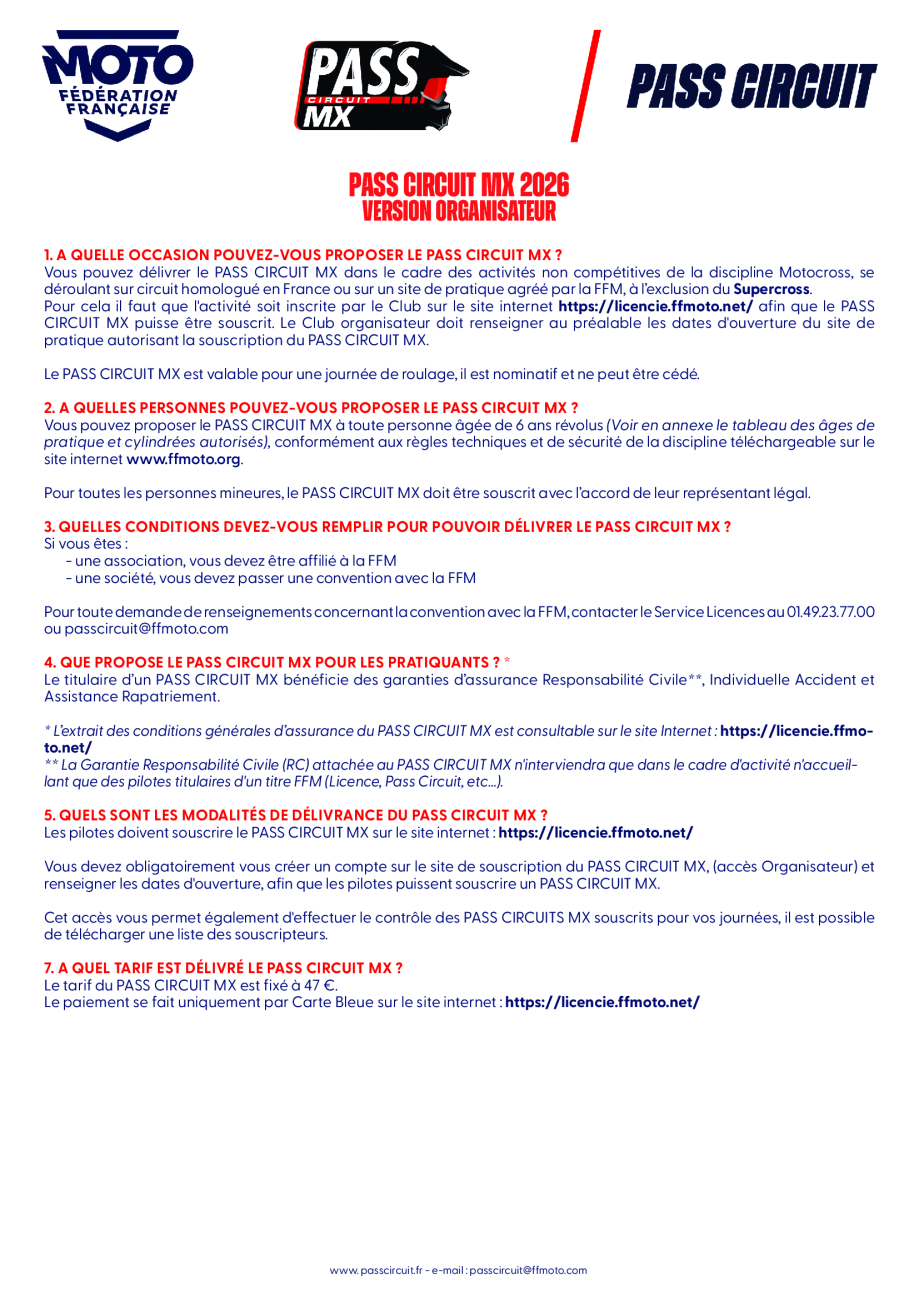 Organisateur - Descriptif Pass circuit - MX