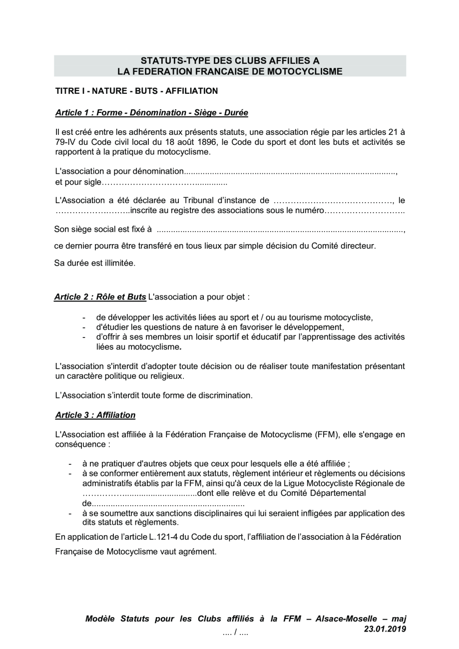 Première affiliation à la FFM