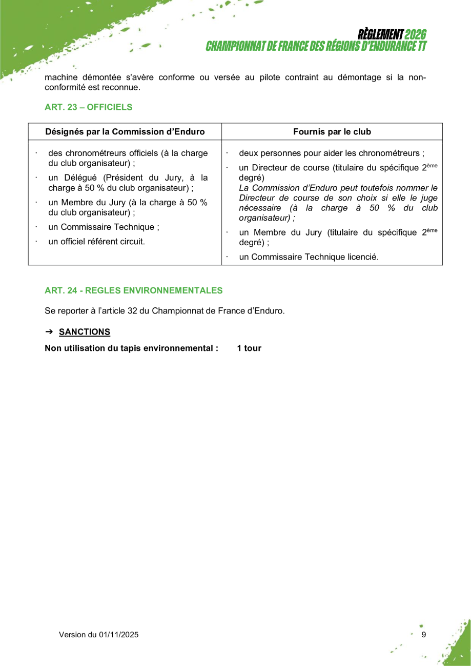 Règlement CF Enduro des Régions d'Endurance TT