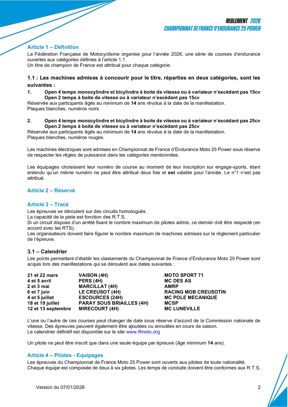 9 - Règlement Championnat de France d'Endurance Moto 25 Power 2026.pdf