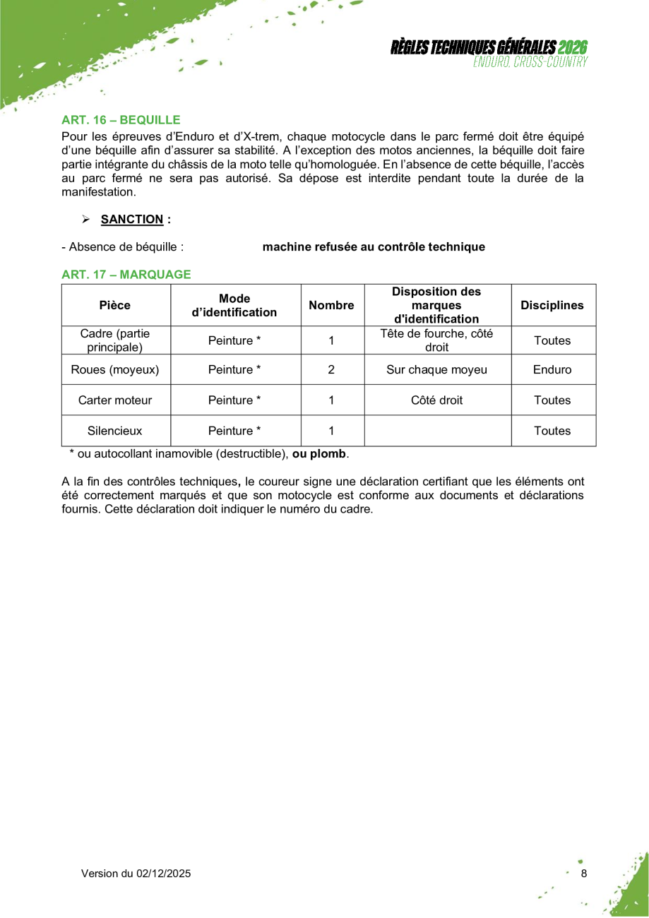 Règles Techniques Générales 2026 - Enduro