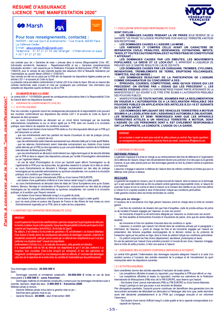 Résumé d'assurance 2026 - Licence une manifestation