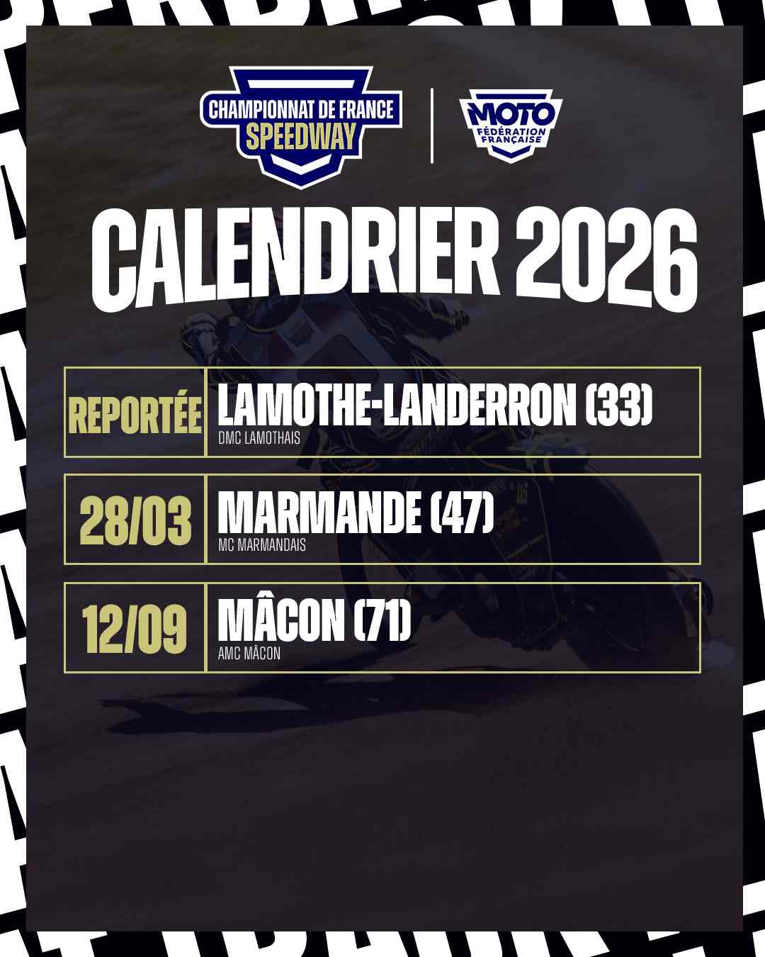 CALEDNRIER 2026 - CHAMPIONNAT DE FRANCE DE SPEEDWAY