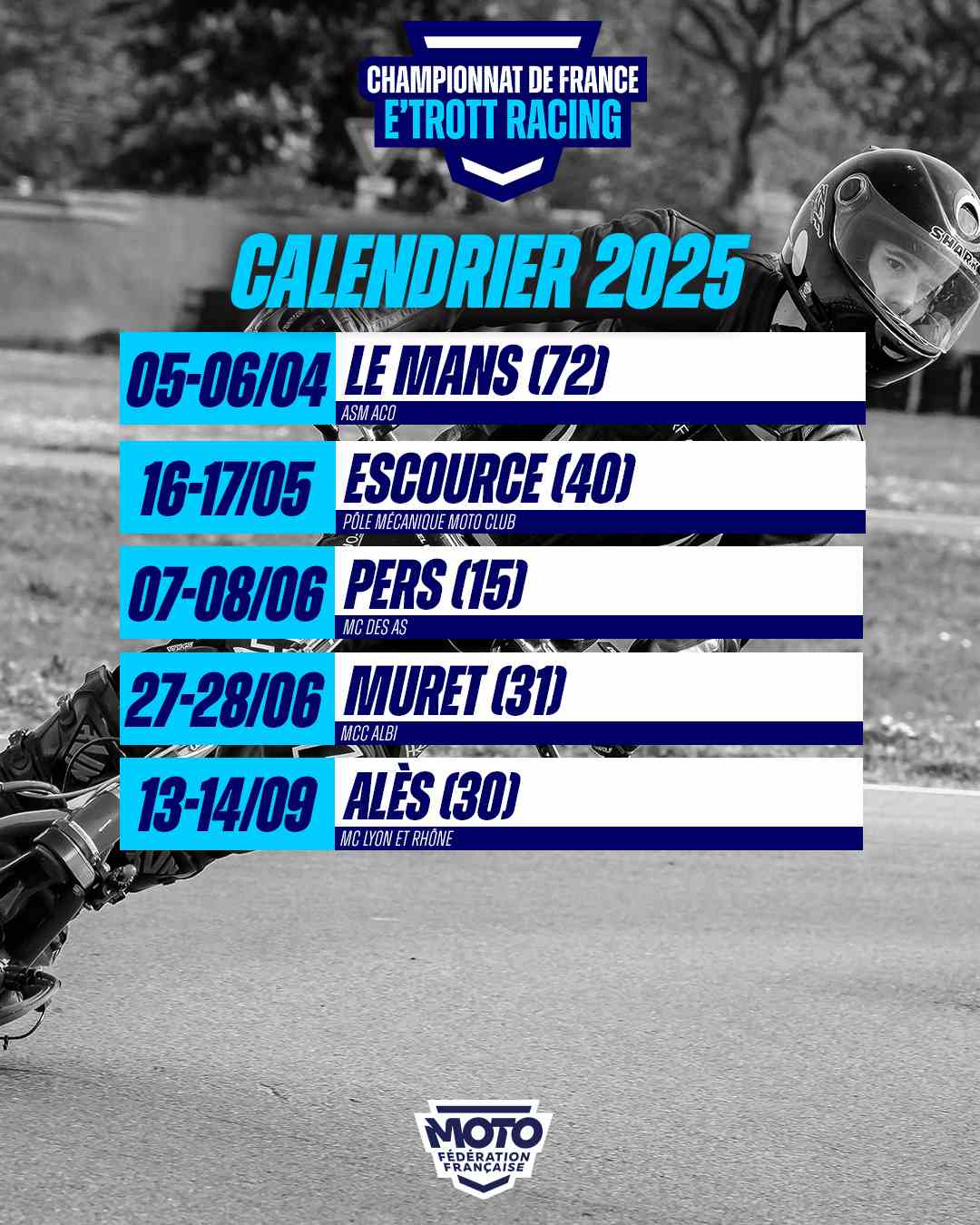 CALENDRIER 2025 CHAMPIONNAT DE FRANCE E'TROTT RACING