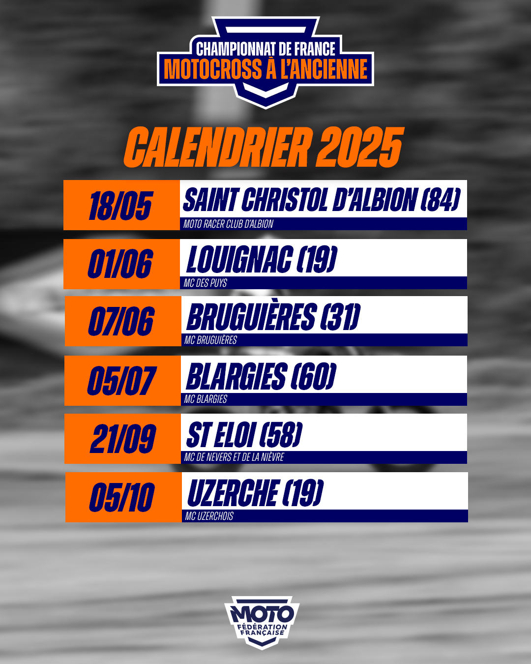 CALENDRIER 2025 - CHAMPIONNAT DE FRANCE MX À L'ANCIENNE