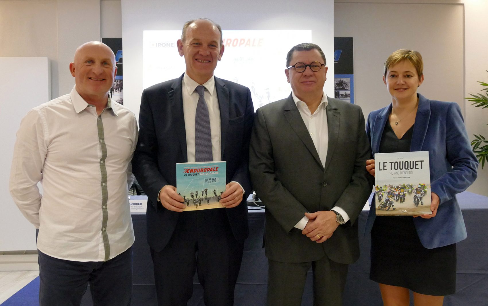 David Hauquier, Président du Moto-Club organisateur ETO et Directeur Sportif de l'épreuve, Daniel Fasquelle, Député du Pas-de-Calais, Jacques Bolle, Président de la FFM et Isabelle Levent, Conseillère Départementale du Pas-de-Calais (photo FFM)