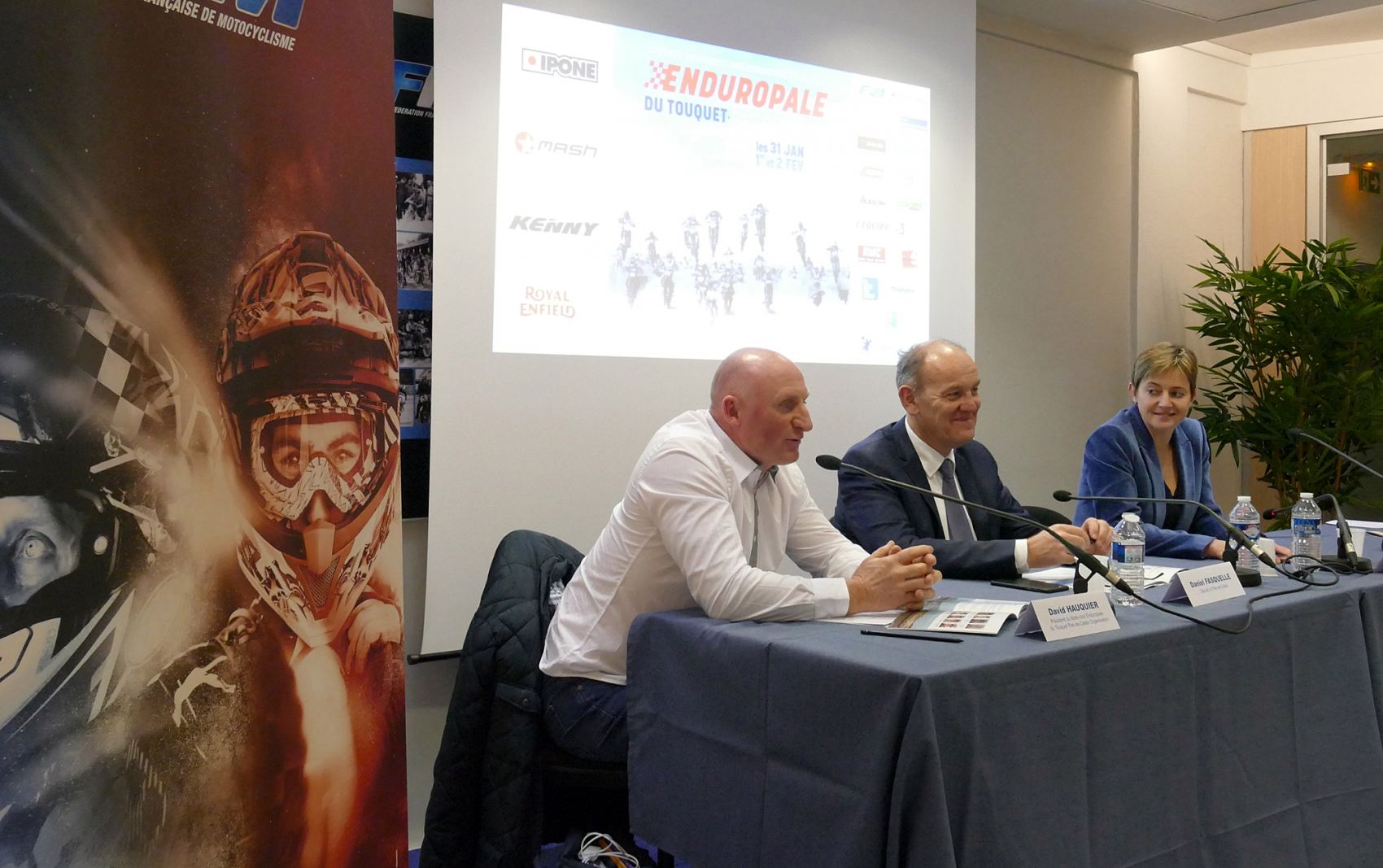 David Hauquier, Président du Moto-Club organisateur ETO et Directeur Sportif de l'épreuve, Daniel Fasquelle, Député du Pas-de-Calais et Isabelle Levent, Conseillère Départementale du Pas-de-Calais (photo FFM)