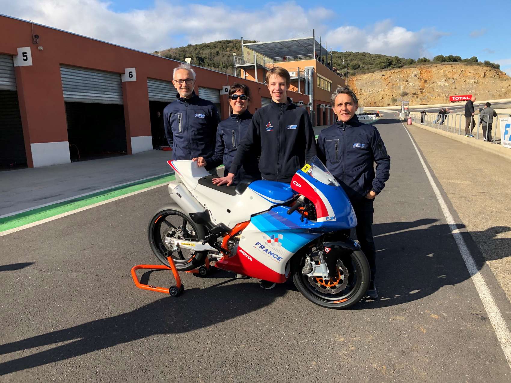 De gauche à droite, P. Thiebaut- DTN de la FFM, C. Castillo – DTN Adjointe FFM, - B. Perrin - pilote Equipe de France, Alain Bronec - Responsable Sportif de la Filière Vitesse FFM