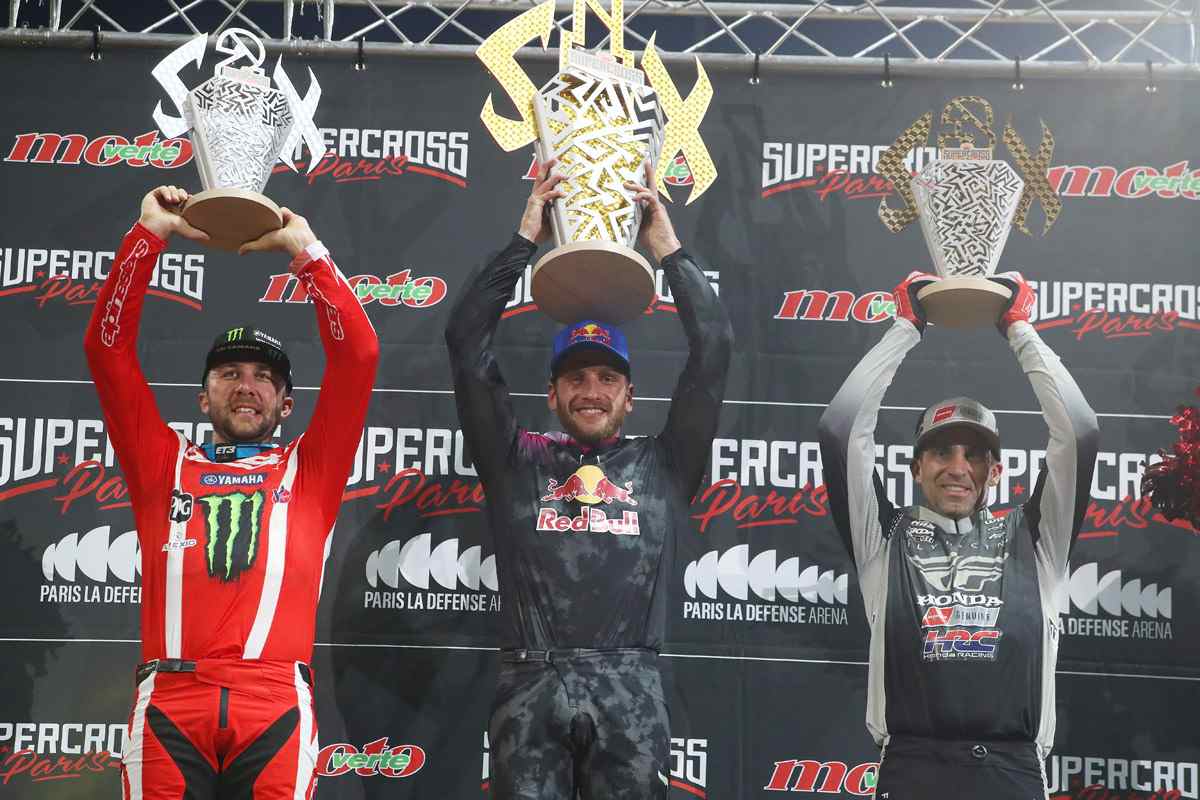Eli Tomac - Yamaha, Ken Roczen - Honda et Justin Brayton - Honda (photo www.supercrossparis.com)