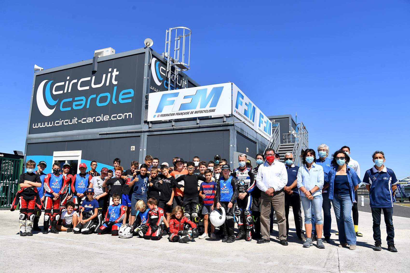 Jacques Bolle - Président de la Fédération Française de Moto avec les Elus et les jeunes stagiaires (photo FFM)