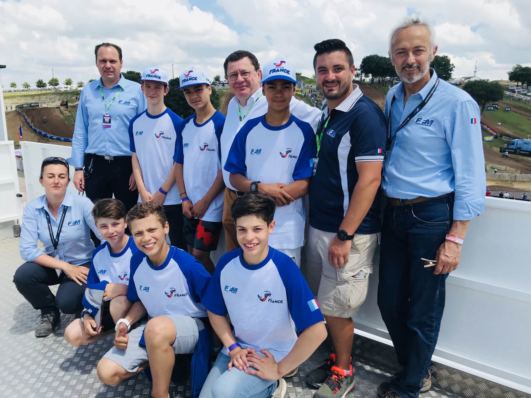 Jacques Bolle, Président de la FFM avec le staff fédéral et les jeunes pilotes Equipe de France Espoir 125/250 FFM (photo FFM)