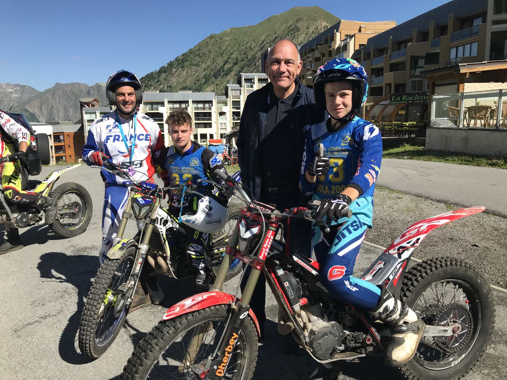 Julien Piquet - Resonsable Filière Trial, Kieran Touly - Sherco, François Courbouleix - Président de la Commission de Trial FFM et Hugo Dufrese - Gas Gas (photo FFM)