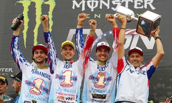 L’Équipe de France : Dylan Ferrandis - Yamaha, Jordi Tixier - KTM, Gautier Paulin - HVA et Pascal Finot - Entraineur National (photo FFM)