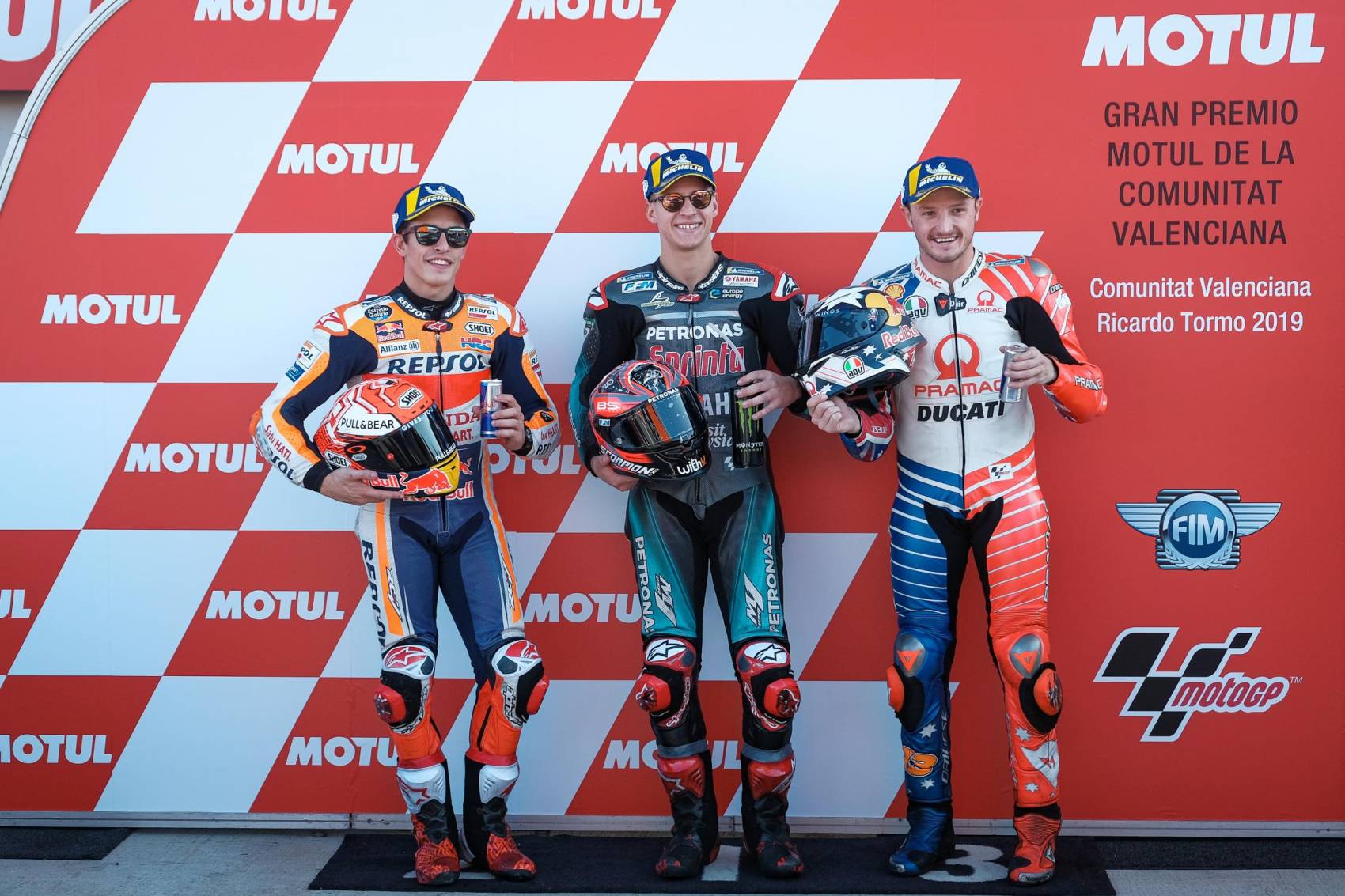 Marc Marquez - Honda, Fabio Quartararo - Yamaha et Jack Miller - Ducati (photo motogp.com