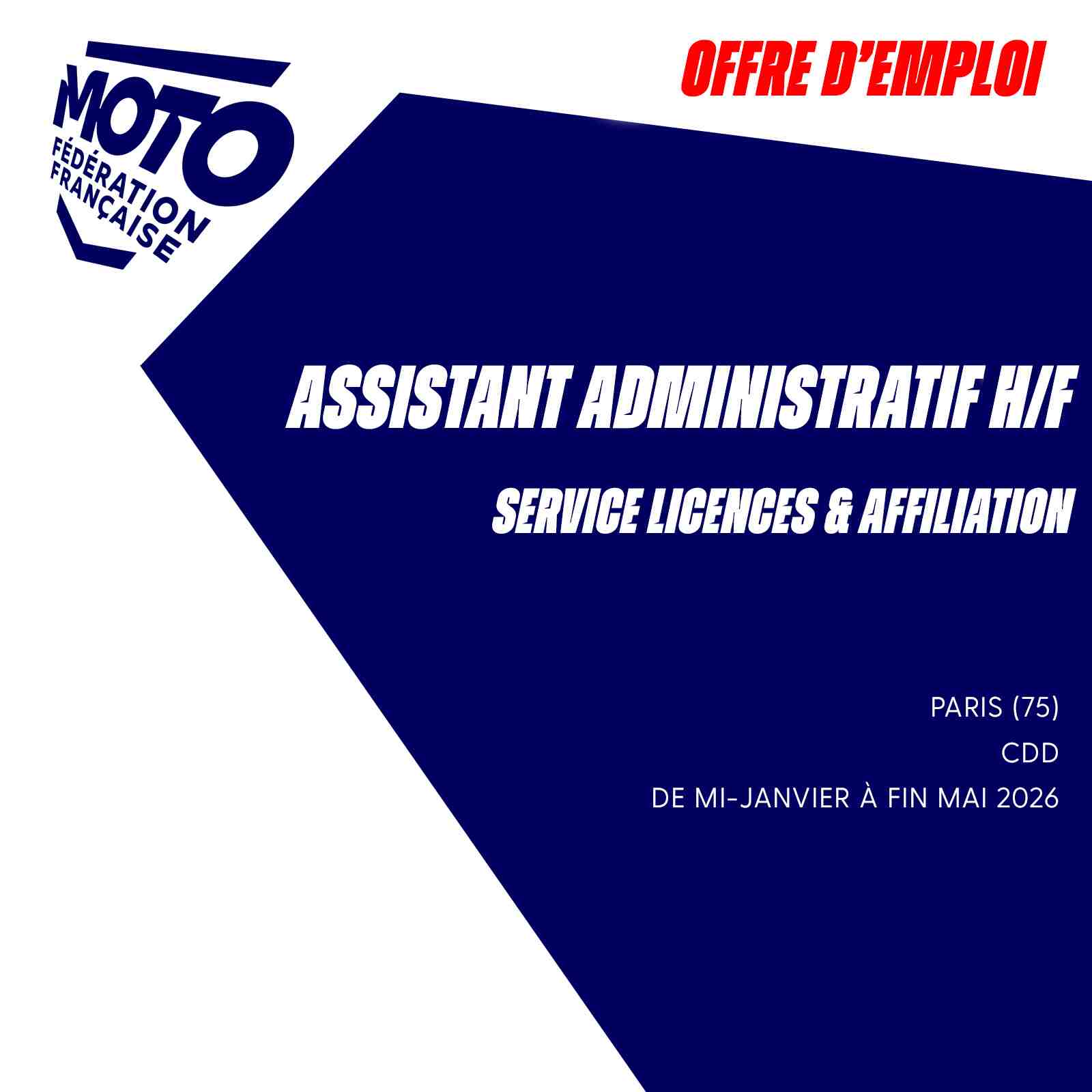 Offre d'emploi - Assistant administratif