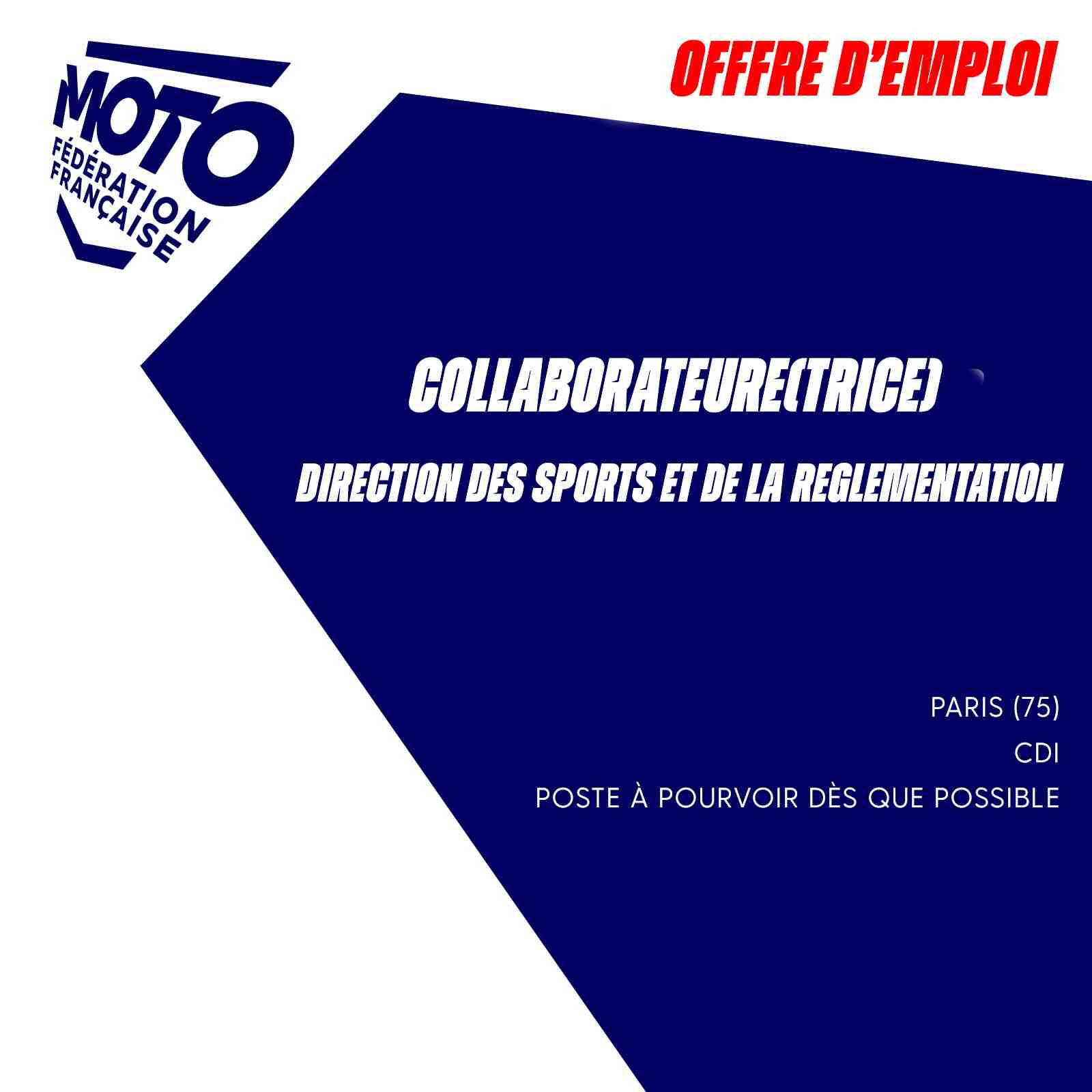 Offre d'emploi - Collaborateur Direction des Sports & Réglementation