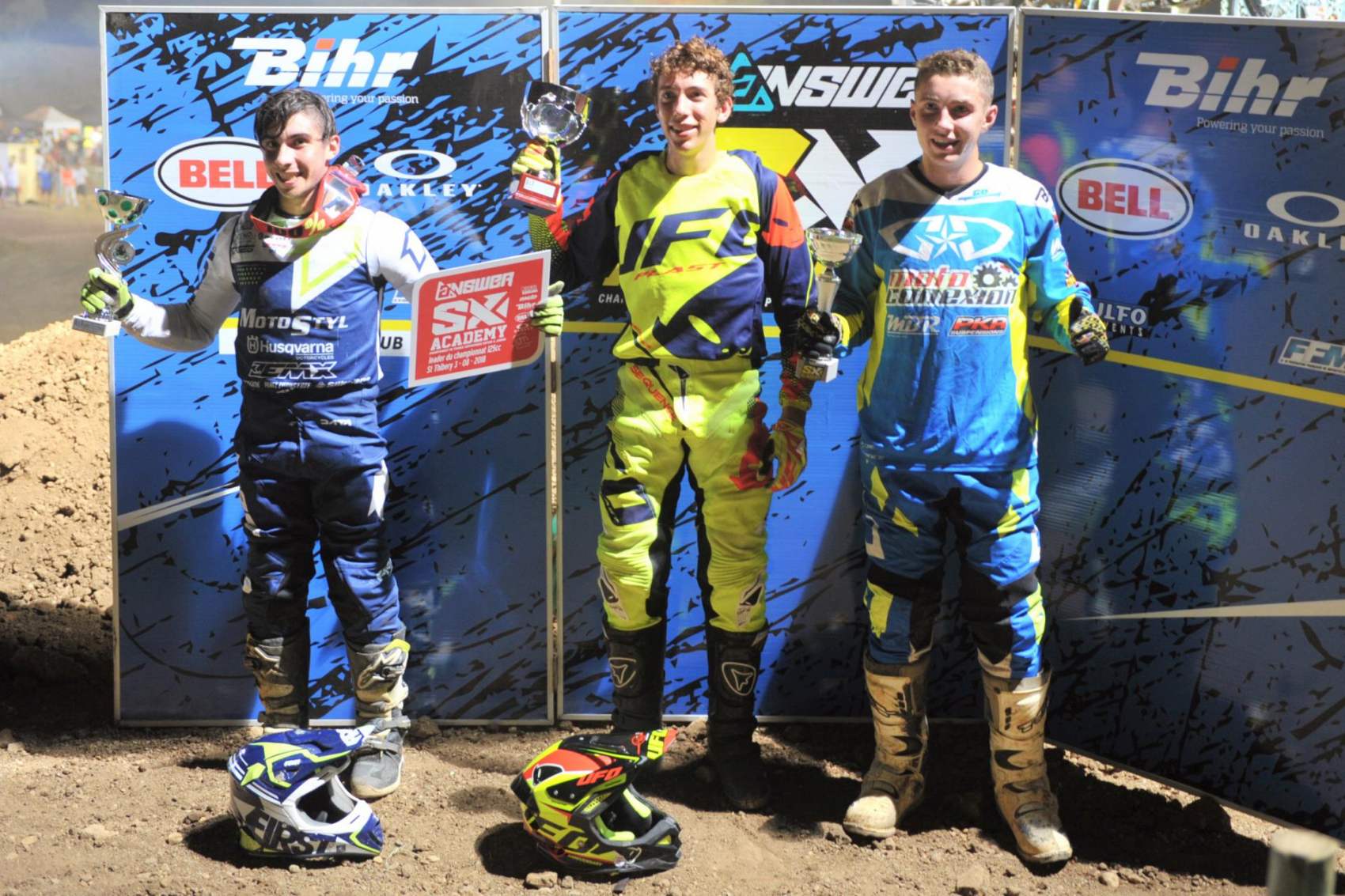 Podium 125 : Enzo Polias - HVA, Andréa Bonifacio - Suzuki et Matéo Bouly - KTM
