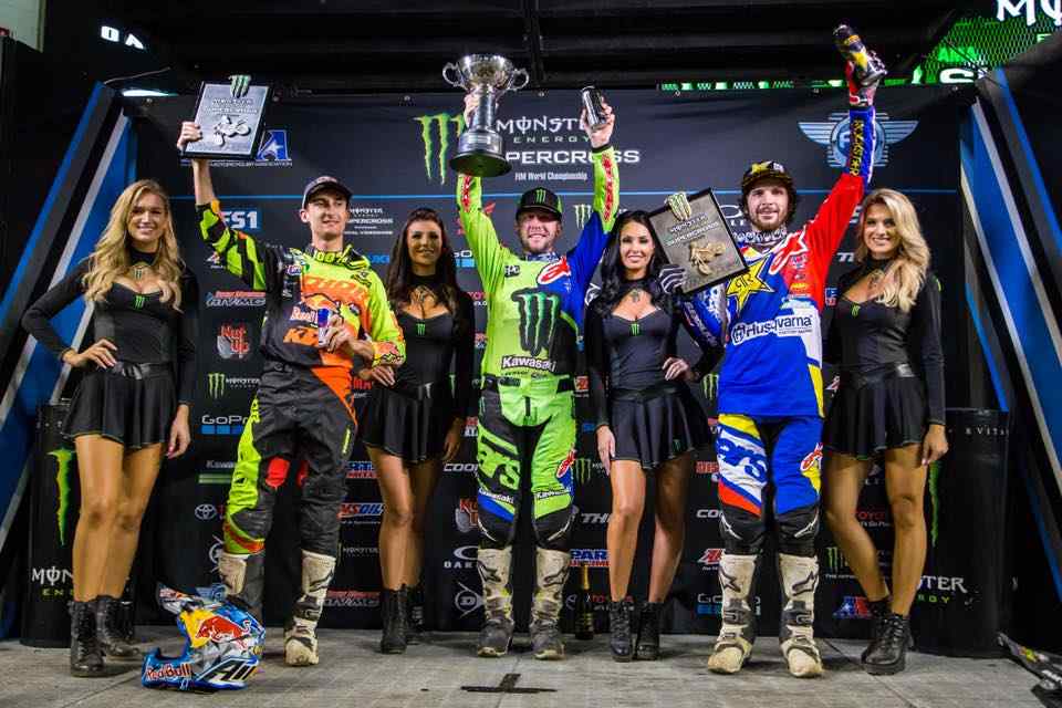 Podium 450SX : Marvin Musquin - KTM, Eli Tomac - Kawasaki et Jason Anderson - HVA (photo Ama Supercross)