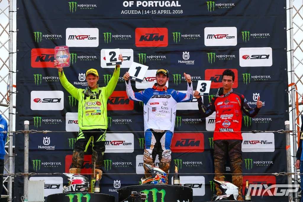 Podium EMX250 : Mel Pocock - HVA, Mathys Boisramé - Honda et Giuseppe Tropepe - Yamaha (photo MXGP.com)