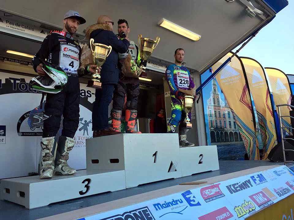 Podium Enduro Vintage (de gauche à droite) : Rudy Vergriete - Honda, Sven Breugelmans - Honda et José Pereira - Kawasaki (photo FB Enduropale du Touquet)