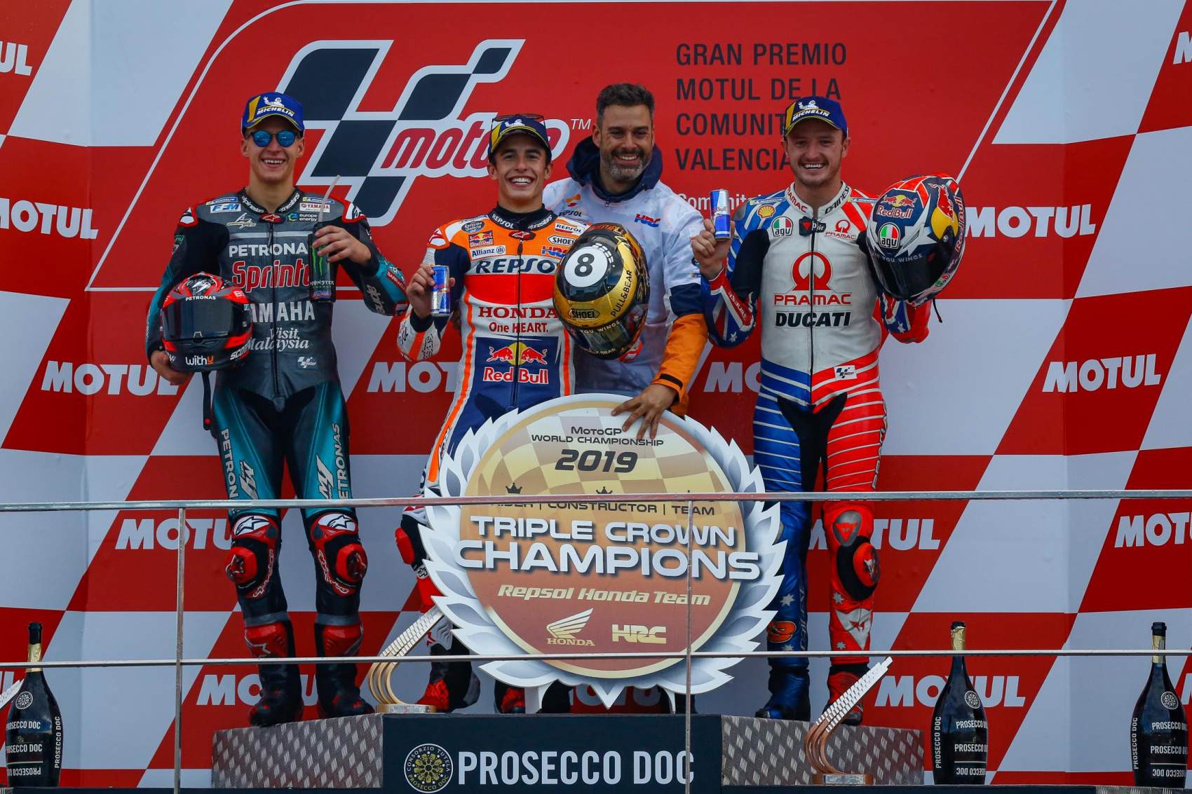 Podium : Fabio Quaratararo - Yamaha, Marc Marquez - Honda et Jack Miller - Ducati (photo motogp.com)