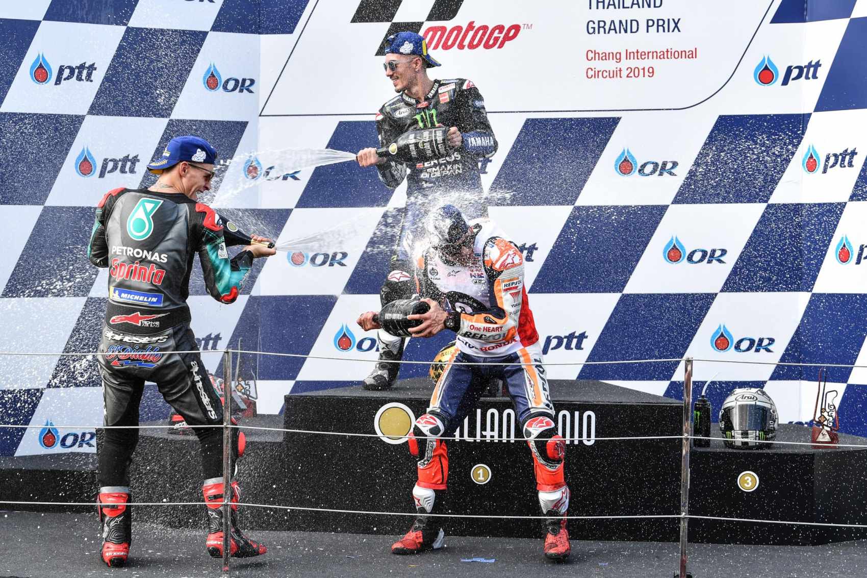 Podium : Fabio Quaratararo - Yamaha, Marc Marquez - Honda et Maverick Viñales -Yamaha (photo motogp.com)