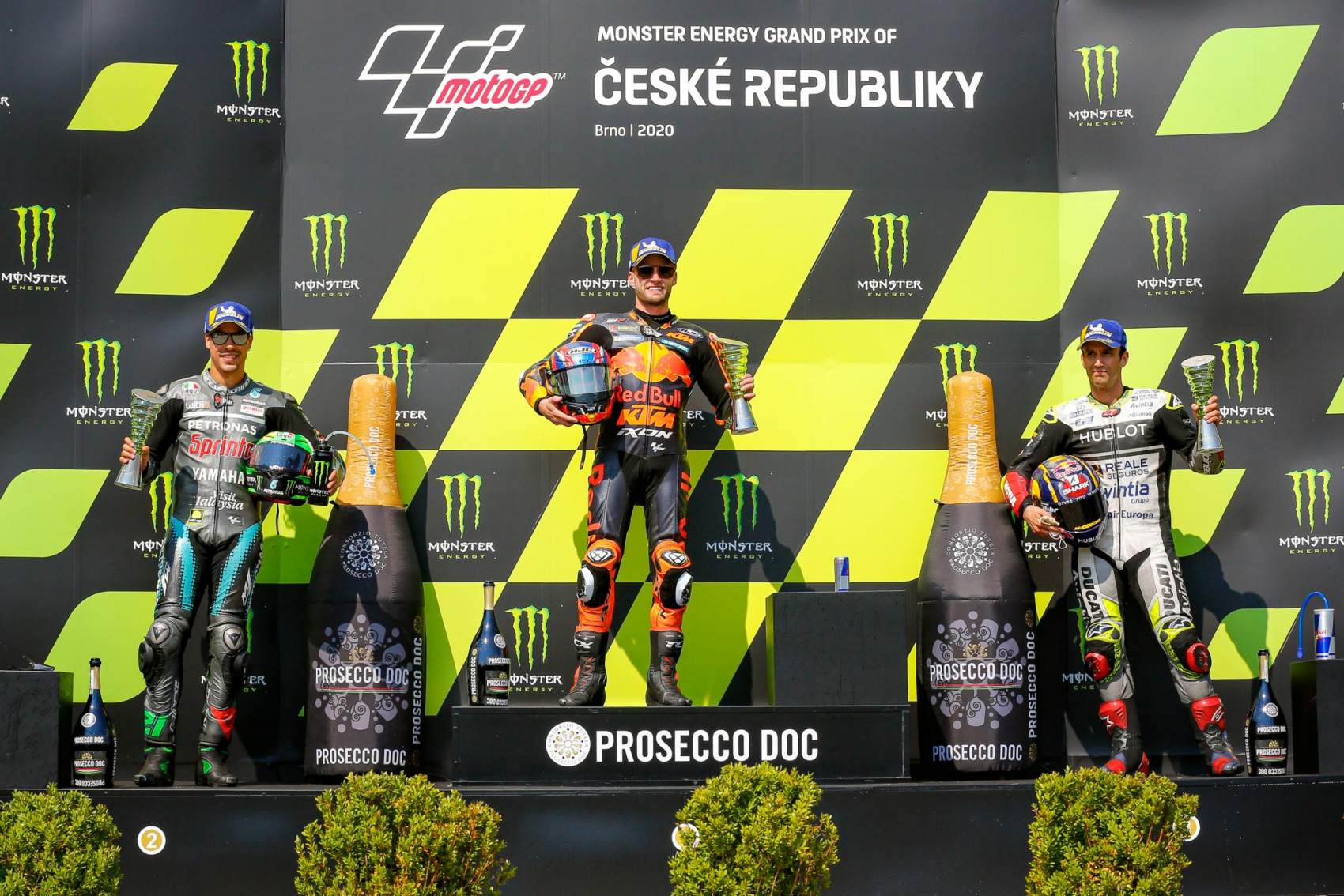 Podium : Franco Morbidelli - Yamaha, Brad Binder - KTM et Johann Zarco - Ducati (photo motogp.com)