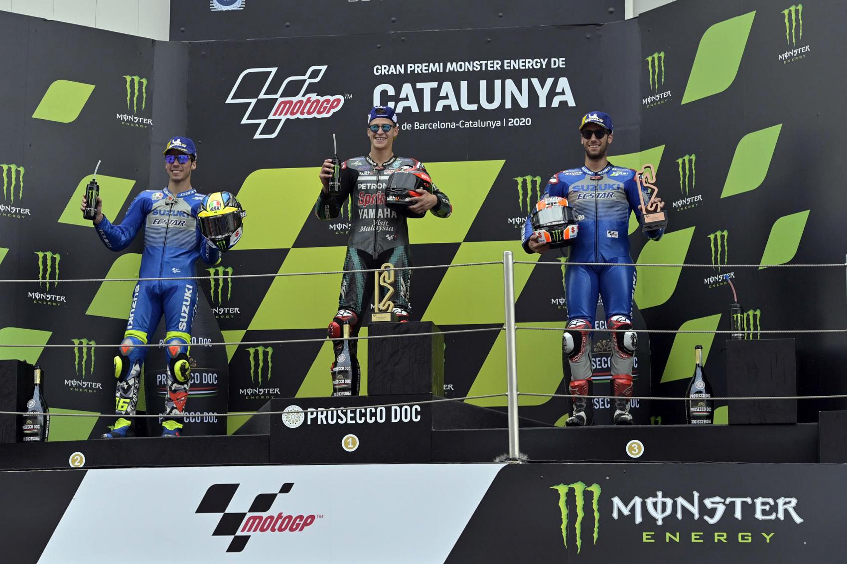 Podium : Joan Mir - Suzuki, Fabio Quaratararo - Yamaha et Alex Rins - Suzuki (photo motogp.com)
