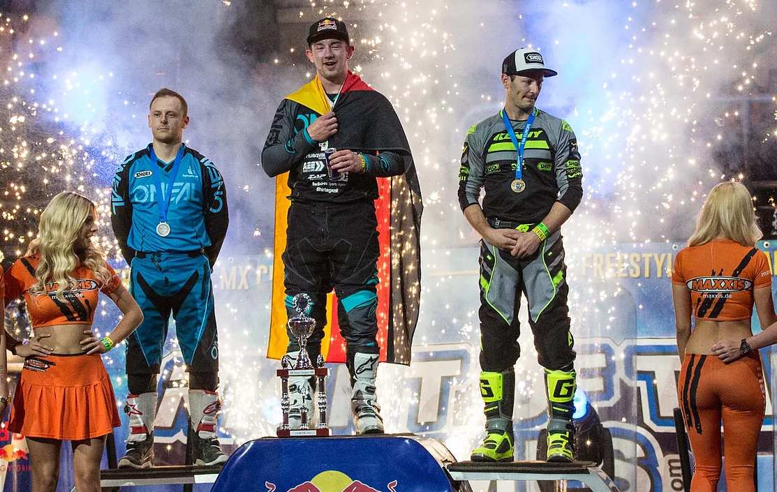 Podium : Maikel Melero - Yamaha, Luc Ackermann - HVA et Rémi Bizouard - Kawasaki (photo Night of the Jumps)