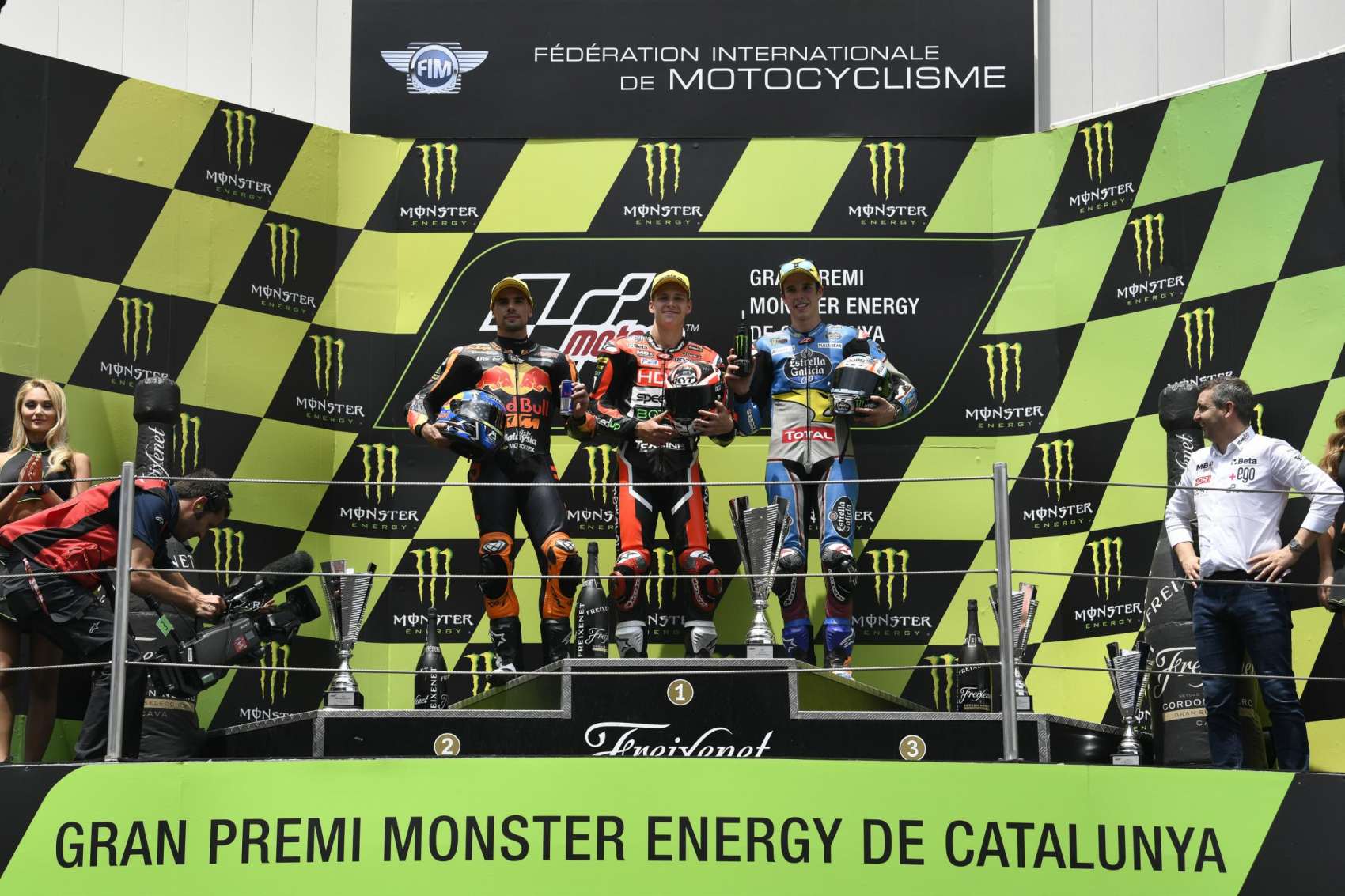 Podium Moto2 : Miguel Oliviera - Red Bull KTM Ajo, Fabio Quaratararo - HDR–Speed Up Racing et Álex Márquez - EG 0,0 Marc VDS (photo MotoGP.com)