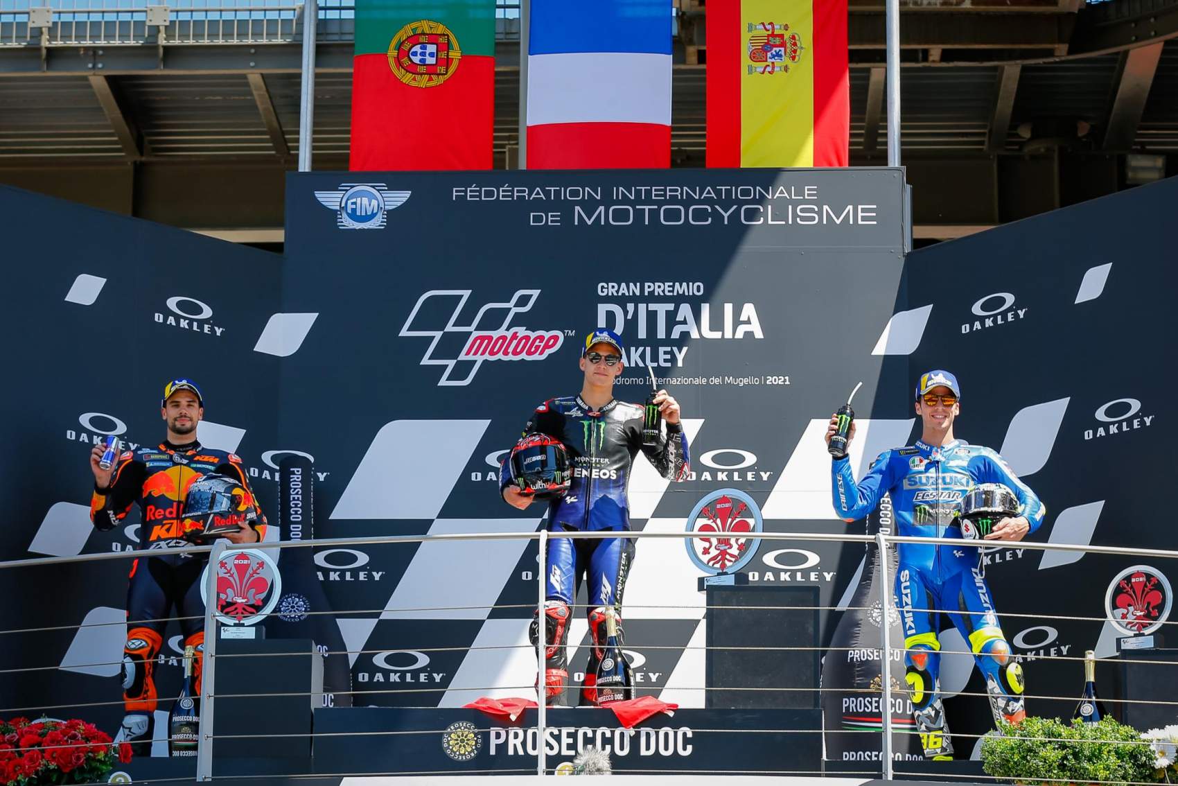 Podium MotoGP : Miguel Oliveira - KTM, Fabio Quartararo - Yamaha et Joan Mir - Suzuki (photo motogp.com)