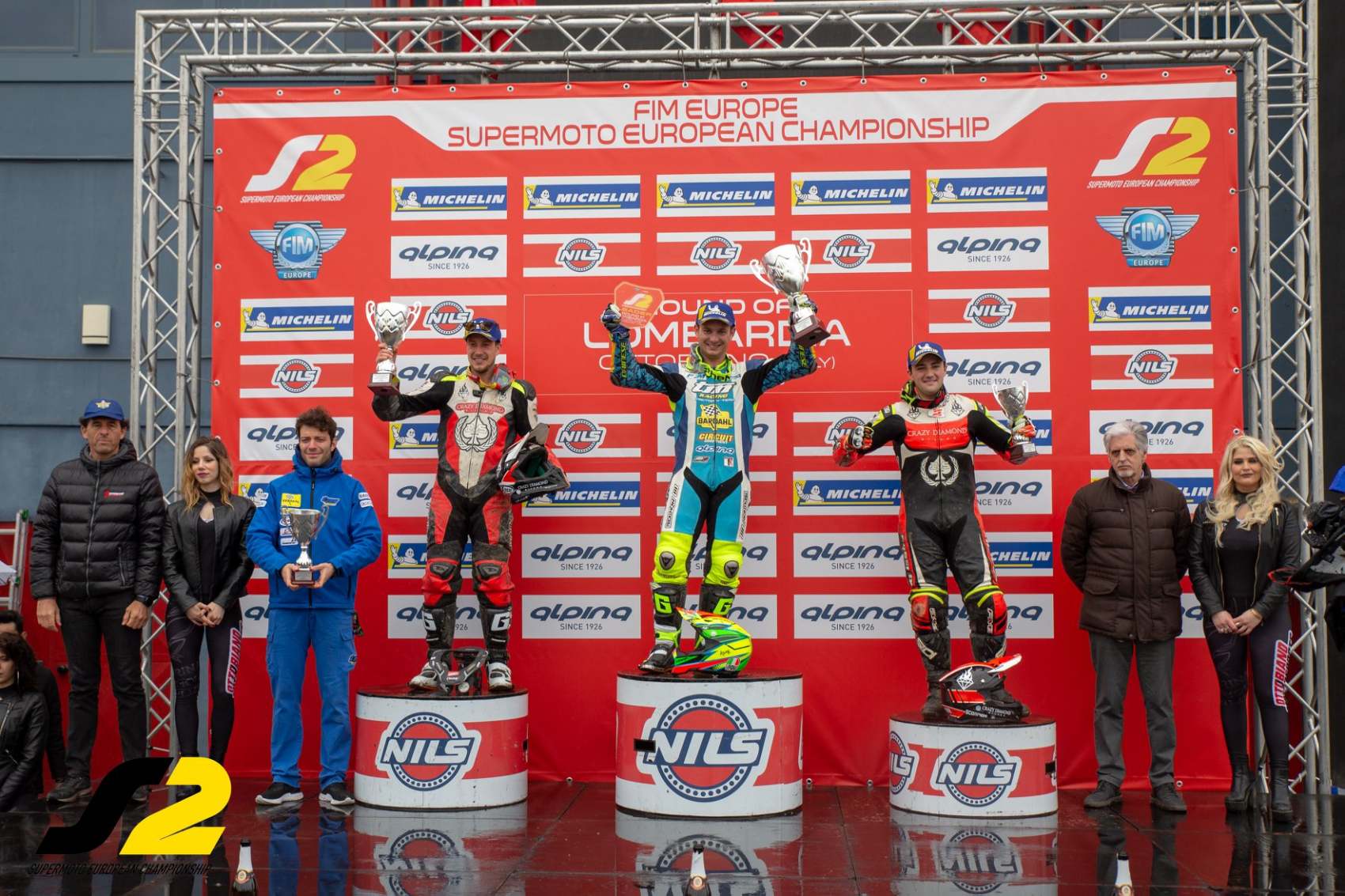 Podium S2 : Elia Sammartin - Honda, Thomas Chareyre - TM et Nicolas Cousin - Honda (photo FIM)