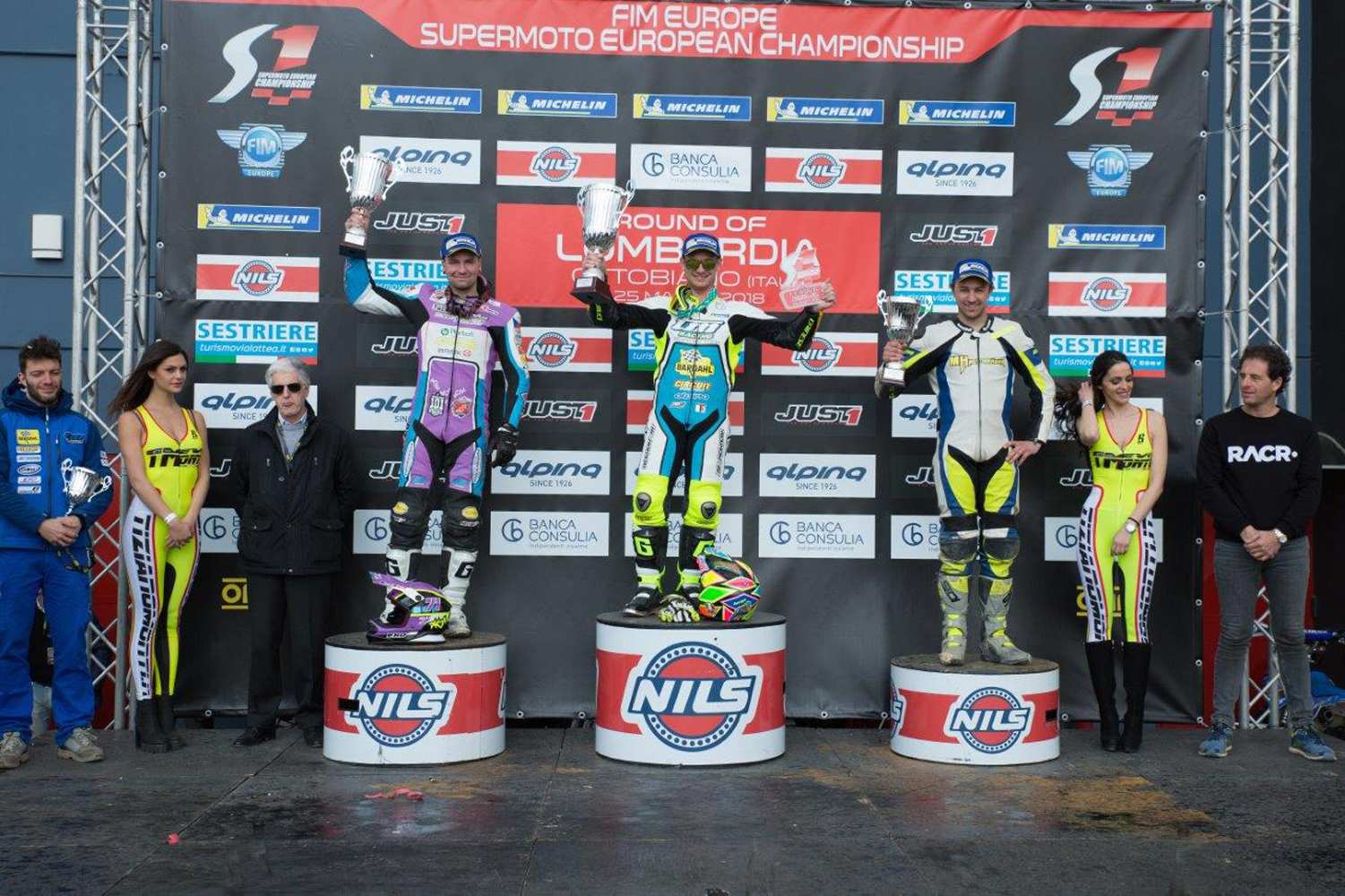 Podium Supermoto S1 : Pavel Kejmar - TM, Thomas Chareyre - TM et Markus Class - HVA (photo supermotos1.eu)