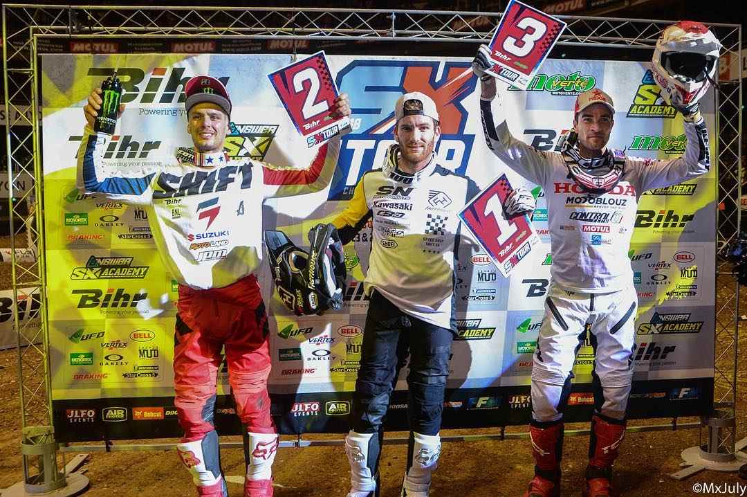 Podium SX1 : Cédric Soubeyras - Suzuki, Greg Aranda - Kawasaki et Xavier Boog - Honda (photo JLFO)